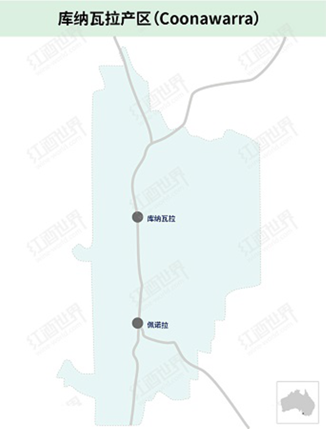 庫納瓦拉產區坐落在南澳州的石灰巖海岸(Limestone Coast)的中心地帶,與維多利亞州(Victoria)比鄰而居,整個產區呈南北狹長狀分布,長約15公里,平均寬度僅有1.5公里,在整個澳大利亞版圖上顯得十分袖珍。不過,這里卻是澳大利亞最古老的葡萄酒產區之一,葡萄種植歷史最早可追溯至1891年。當年,來自蘇格蘭的約翰·瑞多克(John Riddoch)在這片土地上種下了第一批葡萄樹,進而創建了科莫酒莊(Chateau Comaum)。可惜的是,因當地經濟落后,且遠離主要消費群體,該酒莊當時并沒有發展起來。