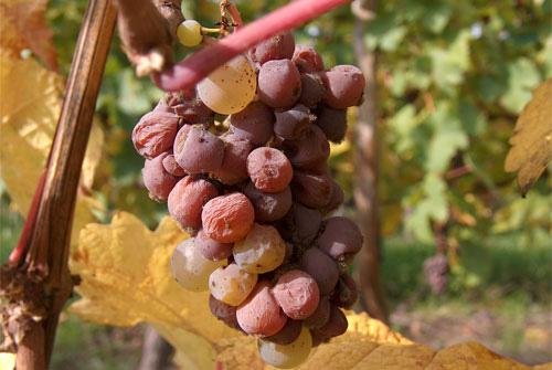 貴腐酒的名稱源自貴腐菌,當(dāng)葡萄受到這種霉菌感染時(shí),表面就會布滿小小氣孔,使葡萄原有的水分漸漸變少,慢慢萎縮成扁扁的葡萄干,而此時(shí),葡萄會自然呈現(xiàn)甜度集中的狀態(tài)。不過,想要讓貴腐菌對葡萄造成恰到好處的傷害,除了夜晚要有薄霧,隔日中午還必須要有陽光,此外,感染過程中,常會造成大量葡萄不能使用,也因此讓貴腐酒要價(jià)不菲。但甜如蜜的豐富香氣,使貴腐甜酒成為法王路易十四口中的王者之酒,就連在歌德的作品《浮士德》當(dāng)中,也曾迷戀的稱之為"生命之泉"。