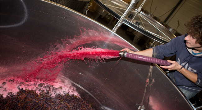 倒罐和回混:發(fā)酵罐底部的葡萄汁泵送至另一個(gè)儲酒罐中,之后再將葡萄汁泵送回原來的容器中,并從發(fā)酵罐頂部向下噴淋酒帽。