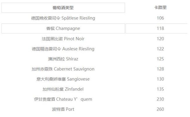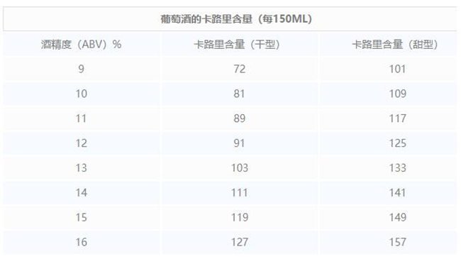 葡萄酒的熱量與其所含的酒精度息息相關(guān)(參考下表),因此不能簡單地用白葡萄酒、紅葡萄酒來做比較。