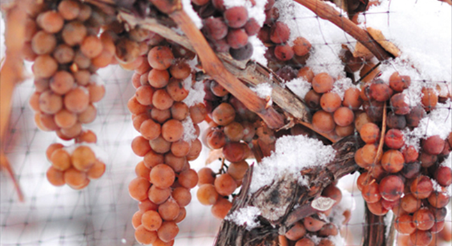 釀制冰酒的葡萄成熟度應(yīng)至少達(dá)到BA的水平,且需在果實(shí)中的水分已結(jié)冰的狀態(tài)下人工采摘和壓榨,以獲得糖分、酸度和風(fēng)味物質(zhì)高度濃縮的葡萄汁。這種情況下壓制出來的果汁非常少,因此冰酒產(chǎn)量極低,平時(shí)釀造一瓶酒的等量葡萄或許僅能釀制一杯冰酒。因?qū)μ鞖鈼l件要求高,冰酒同樣不是每一年都能釀造的。