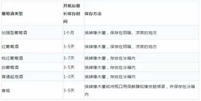 不同類型葡萄酒開瓶后最長保存時間