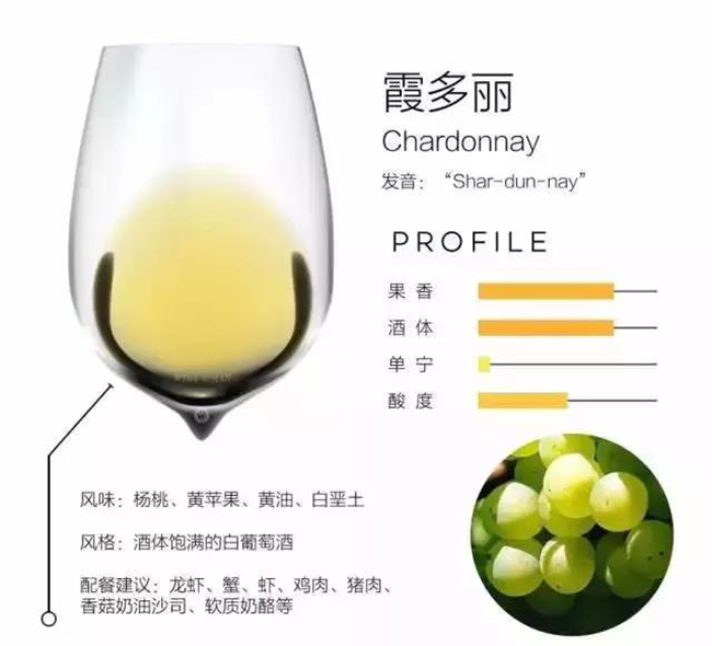 霞多麗是一款源自法國(guó)的干型、飽滿的白葡萄酒。經(jīng)過橡木桶熟成的霞多麗會(huì)有奶油和黃油的味道。