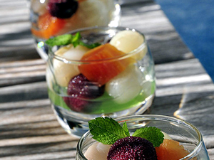 具有濃郁而新鮮的香氣的水果沙拉最適合同樣香氣四溢的葡萄酒。葡萄酒加盟人士認為,天然甜葡萄酒和起泡酒、香檳和微沫香檳酒都能夠突出水果的清新,使得整道甜點的味道既爽口輕盈而又不失精致細膩。