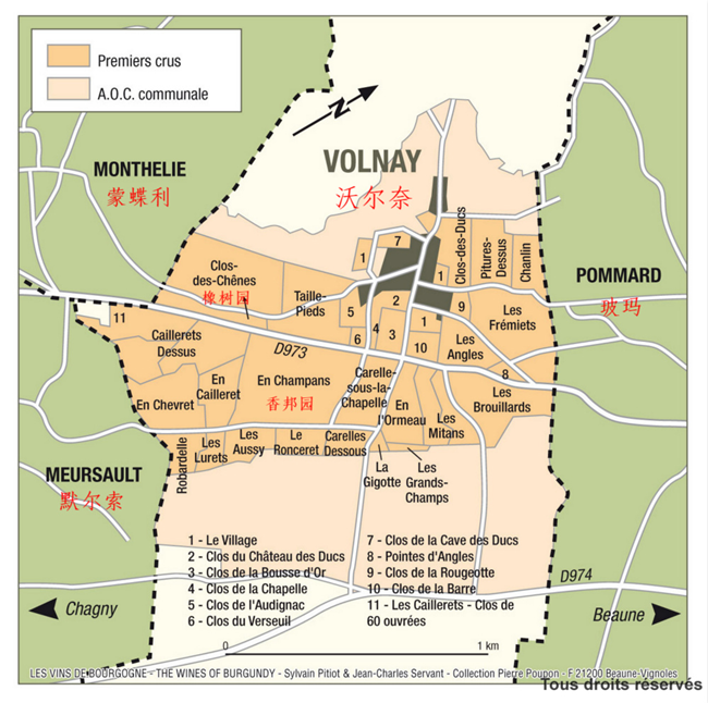 和很多伯恩丘的酒村一樣,沃爾奈沒有特級園(Grand Cru),但有幾塊一級園(Premier Cru)出產(chǎn)的葡萄酒品質(zhì)出色,有著“準(zhǔn)特級園”的稱號。
