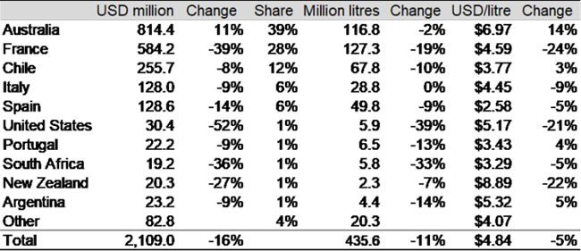 截至 2020 年 3 月底的 12 個月中,澳大利亞葡萄酒的出口總額持續增長。不過,澳大利亞葡萄酒管理局也報告稱新型冠狀病毒對澳大利亞葡萄酒出口的影響還未全面顯現。
