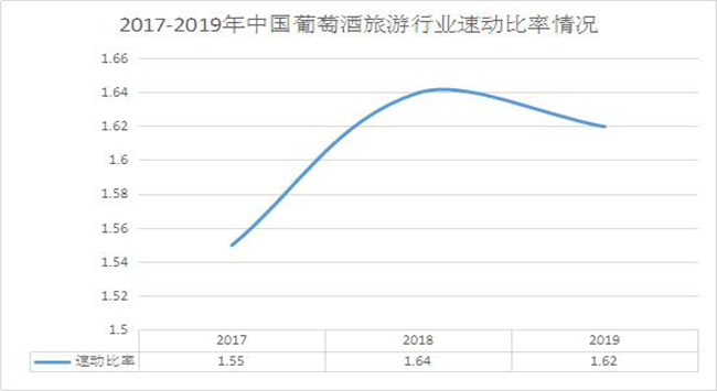 圖表:2017-2019年中國(guó)葡萄酒旅游行業(yè)速動(dòng)比率情況