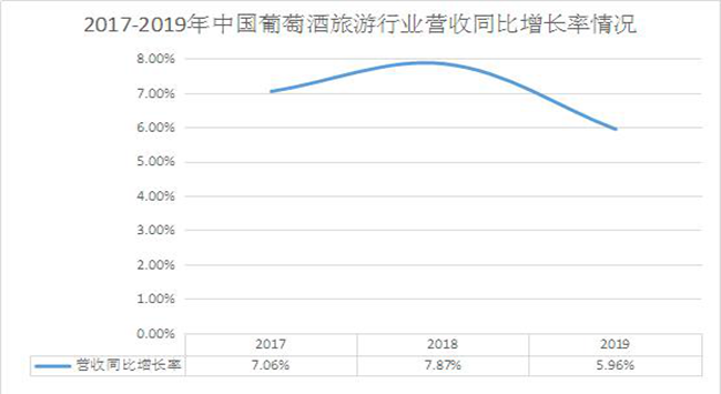圖表:2017-2019年中國(guó)葡萄酒旅游行業(yè)營(yíng)收同比增長(zhǎng)率情況