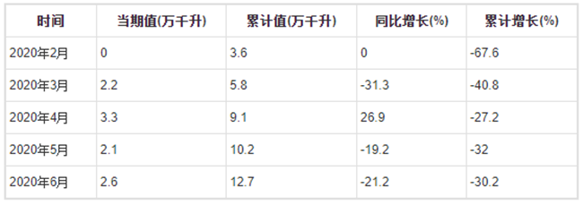 2020年1-6月全國葡萄酒產(chǎn)量分月數(shù)據(jù)