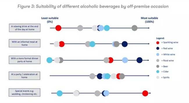 “在葡萄酒消費者中,氣泡葡萄酒依然與正式場合或者慶典緊密聯系在一起。”Wine Intelligence表示,“在這些場合中,氣泡葡萄酒消費比例高于其他酒精性飲品。”