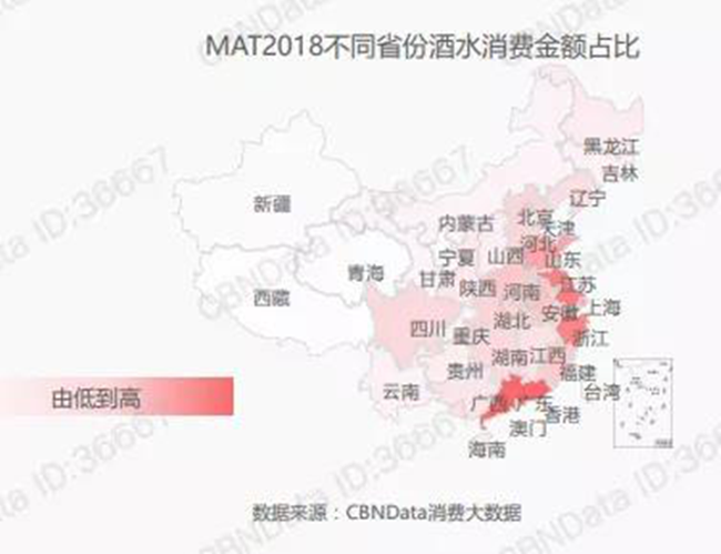 CBNData顯示,廣東是2018和2019年度酒水消費金額占比最高的省份,而廣東省坐擁深圳和廣州兩個一線城市,表現十分搶眼。 回頭看廣東省600萬及1000萬資產家庭數量,結論顯而易見了。