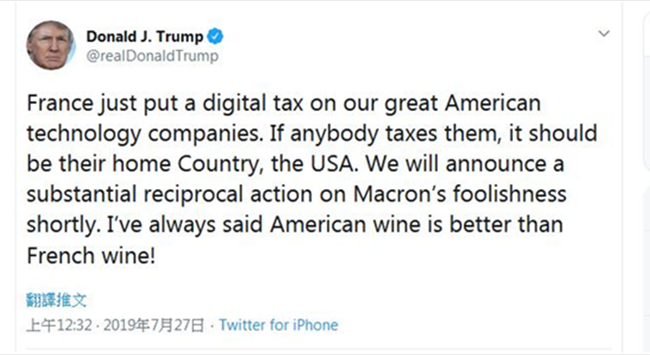 報復法國"數字稅",特朗普要把"大棒"揮向葡萄酒